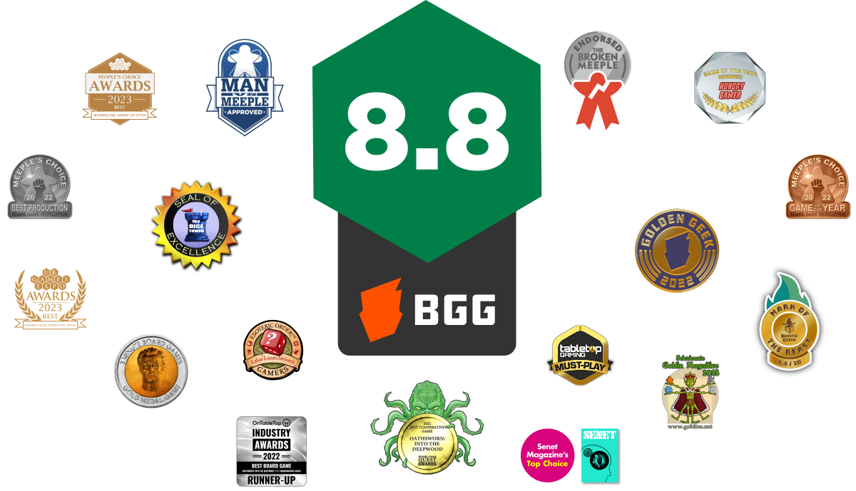 Oathsworn: Into The Deepwood base game including all unlocked gameplay stretch goals from the 1st and 2nd Kickstarter campaigns.